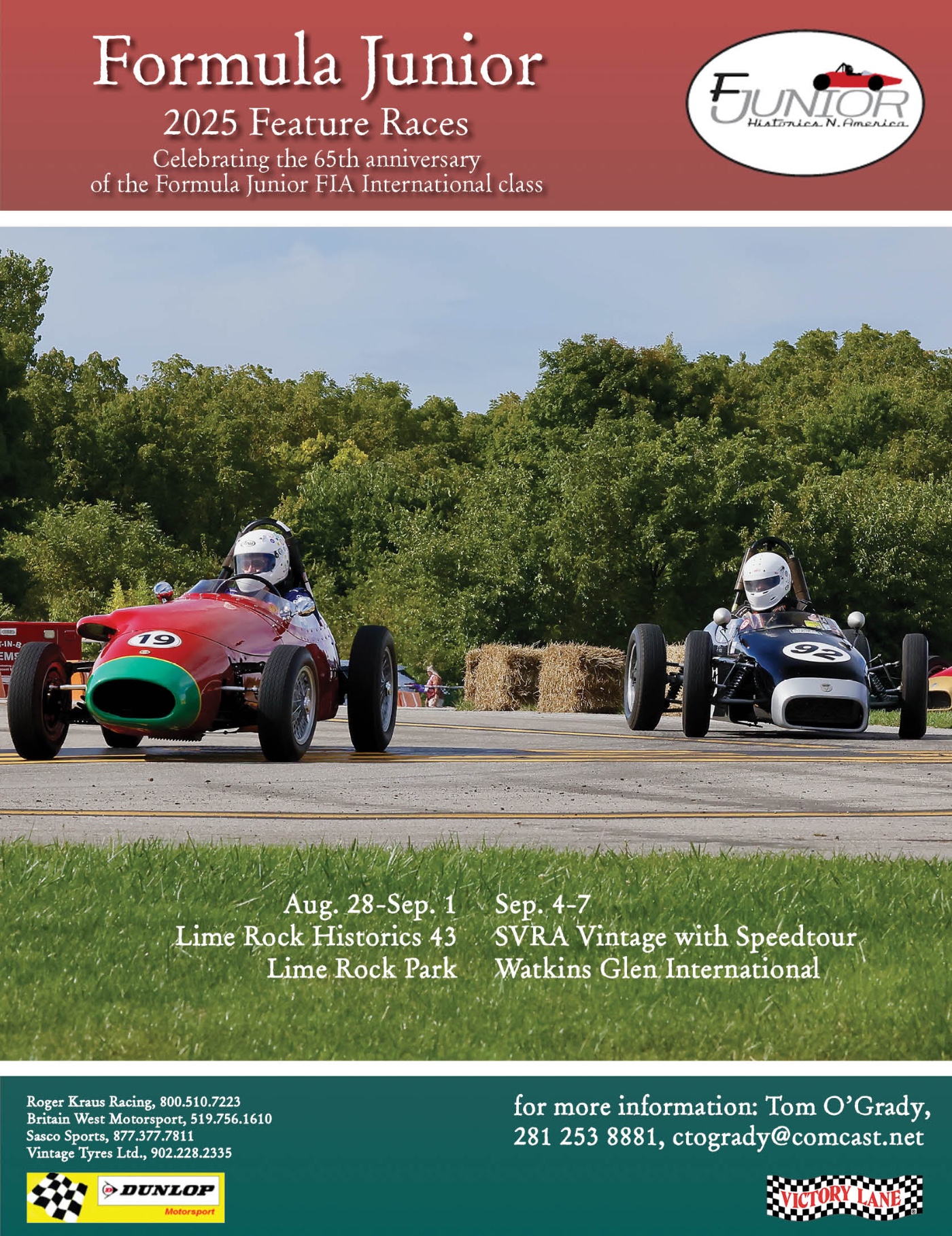 Formula Junior Historics North America, FJHNA promotes and organizes vintage Formula Junior features at vintage race weekends across North America. It is an association of active vintage Formula Junior car racers, owners who compete in these races. These are the very important and spectacular formula cars of the FIA International Series of 1959-1963 that launched careers of Formula One drivers. They include cars from Stanguellini, Bandini, Lotus, Lola, Brabham, Elva, BMC and over a hundred others. They are the cars of the 1958 Italian Championship that launched the movement and the 1959-1964 SCCA amateur series in the United States.